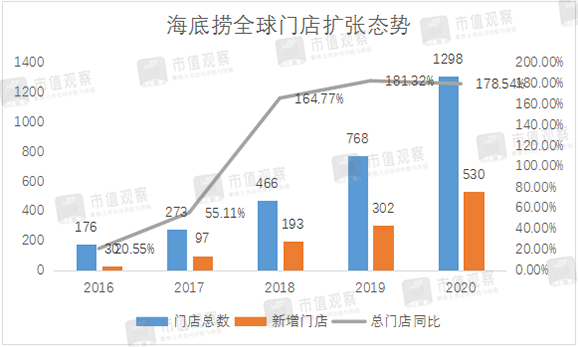 门店的快速扩张也撑起了海底捞的高估值逻辑。