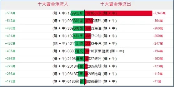 好仓(认购证及牛证)方面,周三友邦、阿里相关好仓单日录得逾500万港元资金净流入;小米相关好仓单日录得约2946万港元资金净流出。