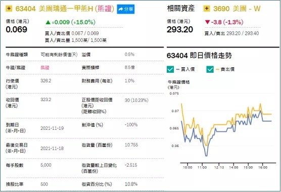 淡仓(认沽证及熊证)方面,周三个股相关淡仓净流入资金规模较小,美团相关淡仓单日录得324万港元资金净流出。