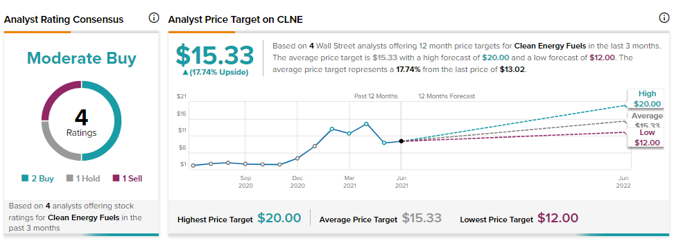 在成为散户新目标之前,Needham分析师Vikram Bagri予Clean Energy Fuels“买入”评级,目标价12美元。该分析师认为,公司与清洁能源行业“重量级企业”的合作关系,使其能够创建一个难以复制的可再生天然气价值链。Bagri估计Clean Legacy资产价值约为每股4美元,每1亿美元的RNG生产净投资份额可增加约1美元/股的价值。