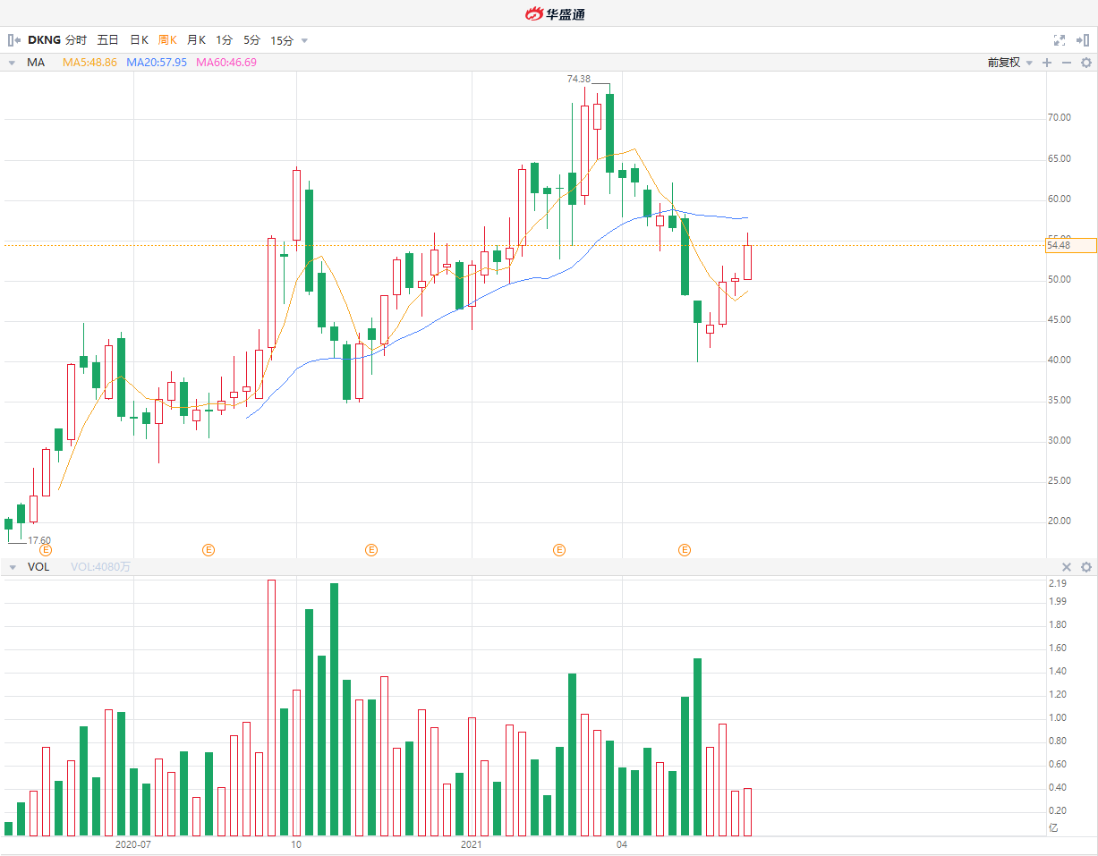 公司股价自上市以后也持续走高,近期有所回调。截至6月9日收盘,公司股价报54.48美元,市值219亿美元。随着美国合法博彩的州越来越多,加之欧洲杯带来的体育博彩热潮,DraftKings股价有望再度走高。