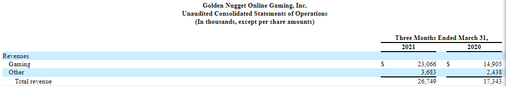 2020年底,公司同样借助SPAC模式成功上市,成为了美国唯二上市的在线赌场公司,交易代码为GNOG。相比于DraftKings,公司目前的整体规模较小,同样处于成长期。2020年,公司实现营收9100万美元,同比增长64.4%,并实现了2500万美元的利润。2021年Q1,公司录得营收2670万美元,同比亦实现54%的增长。