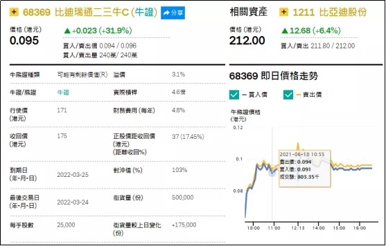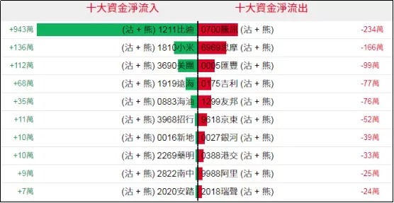 淡仓(认沽证及熊证)方面,周四比迪相关淡仓单日录得约943万港元资金净流入,个股相关净流出资金规模较小。