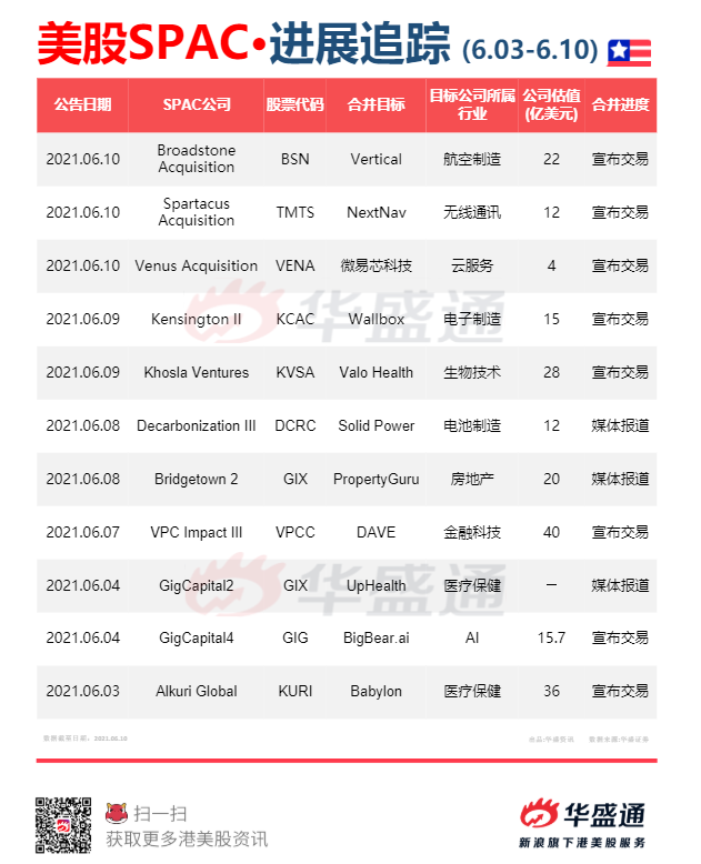 一周以来,SPAC市场新增11笔交易(详见下表)。其中新加坡在线房地产公司PropertyGuru较受关注。据媒体报道,PropertyGuru正在与香港富商李泽楷和美国创投大亨彼得·泰尔(Peter Thiel)旗下的SPAC公司Bridgetown 2 Holdings商讨合并交易,预计最快将可能在下个月宣布合并计划。PropertyGuru将实现通过SPAC在美国上市。