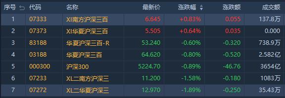 沪深300指数收涨0.89%。其中,华夏沪深三百-R(83188.HK)跌0.6%,成交额738.9万港元;华夏沪深三百ETF(03188.HK)涨跌0.8%,成交额2.58亿港元。