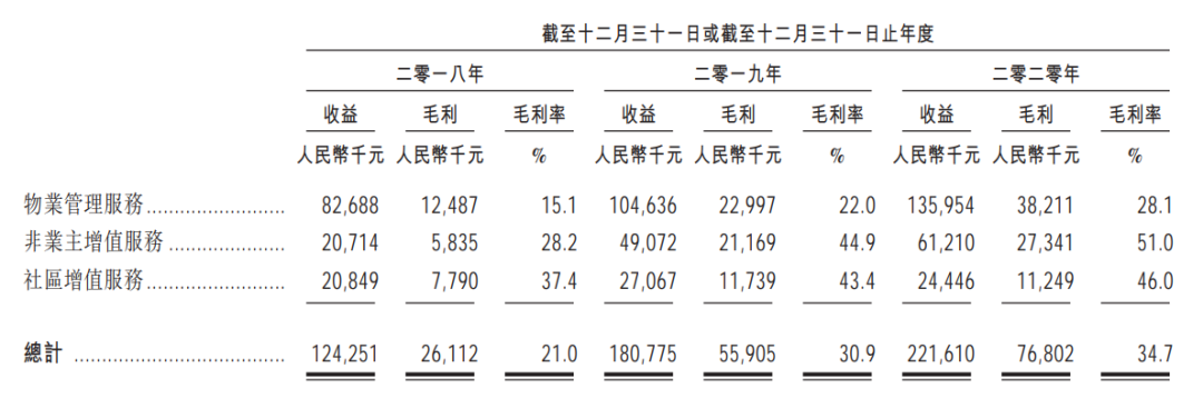 如上图,毛利率最低的物业管理服务2020年占其总营收的大概61%,毛利率最高的、包含了康养业务的社区增值服务,2020年占其总营收大概11%。