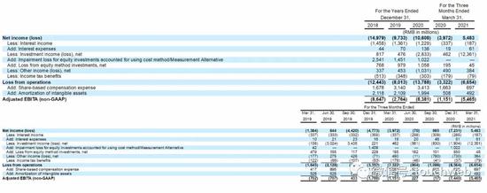 不过,滴滴2021年第一季度仍处于运营亏损状态,运营亏损为66.54亿元,之所以能实现盈利,主要是计入了一笔投资收入,高达123.61亿元。