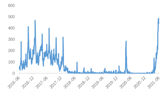 8月前TGA泄洪的压力仍在。2021年2月1日,美国财政部公布TGA缩减计划,开始着手压降TGA账户余额。计划3月底缩减至8000亿美元,6月底缩减至5000亿美元,最终在7月底达到要求。但截止6月2日TGA的账户余额还有7832亿,压降速度低于计划。