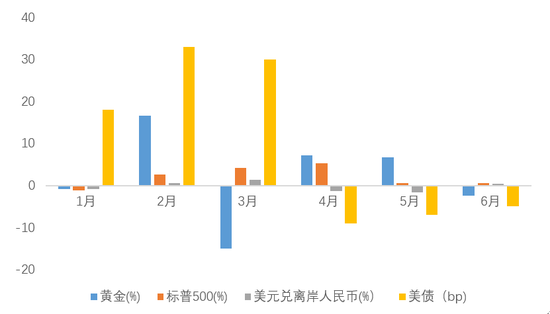 | 图6:今年1-6月美股、美债、美元、黄金表现 |