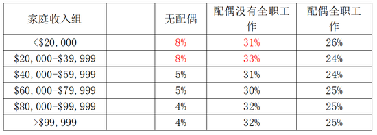 | 表1:低收入人群最有可能因为要照顾孩子而尚未回到劳动力市场 |