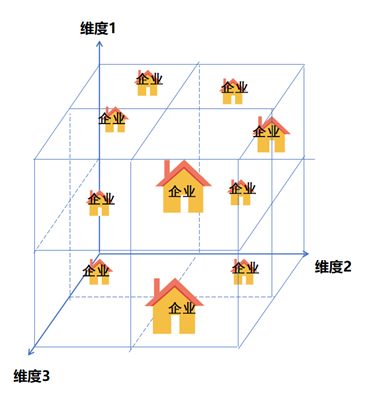 但商品往往不只两个维度,如果商品的多个维度都是弱属性,那N维和两维、一维没有什么区别,最终都是要向中间走,但如果出现多个强属性的维度,那市场可能更加复杂,我们可以想象下面的三维图形: