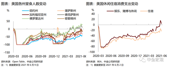 从经济基本看,自上次议息会议以来,美国供需矛盾进一步扩大。随着疫苗接种的推进和夏季外出旺季的到来,消费需求(尤其是服务消费)加速扩张。但另一方面,供给瓶颈不但没有缓解,反而愈演愈烈——原材料缺货,供应交付时间拉长,劳动力就业意愿不足等问题仍在。供需缺口加剧的结果是价格上升。CPI连续两个月超预期上行,已超出基数效应能解释的范围。对此,美联储可能会上调2021年PCE与核心PCE通胀预测,并对其“暂时性”通胀的说法进行进一步的阐释。