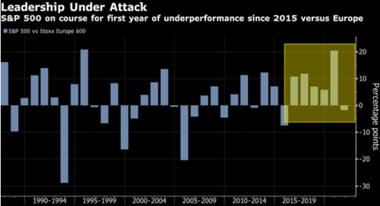 美国股市多年来一直位居世界榜首,先是科技股的强大帮助美股在疫情中鹤立鸡群,然后是疫苗接种领跑带来了经济重新开放的乐观情绪。“美国优先交易”帮助标普500指数连续5年跑赢欧洲基准指数,为历史最长纪录。