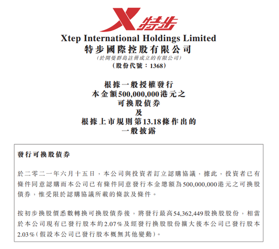 特步国际(01368.HK)发布公告,于2021年6月15日,公司直接全资附属公司特步环球(拥有盖世威及帕拉丁品牌)与投资者GSUM VII Holdings Limited订立认购协议,据此,特步环球已有条件同意发行本金总额为6500万美元的零票息可换股债券。
