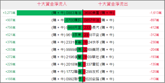 好仓(认购证及牛证)方面,上周五中海油相关好仓单日录得约3273万港元资金净流入;美团相关好仓单日录得约1613万港元资金净流出。