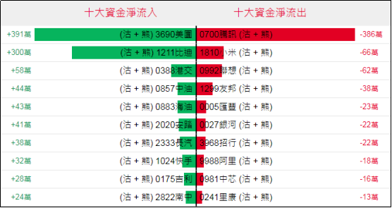 淡仓(认沽证及熊证)方面,上周五个股相关淡仓资金流规模较小,美团、比迪相关淡仓单日录得超300万港元资金净流入,腾讯相关淡仓单日录得约386万港元资金净流出。