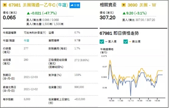 1、强势轮证:美团瑞通一乙牛(67981.HK),上周五上涨47.7%;