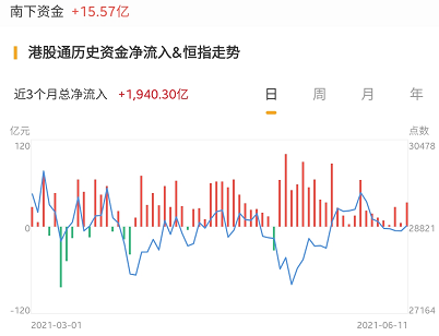 南下资金今日净流入港股高达15.57亿港元,上周五为净流入超33亿港元。