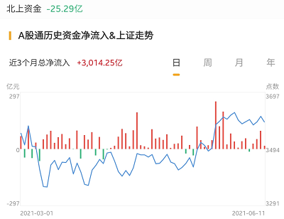 北上资金今日净流出25.29亿元,上周五为净流入超15亿元。