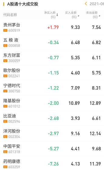 北上资金今日净买入贵州茅台1.79亿元,为今日买入之最。