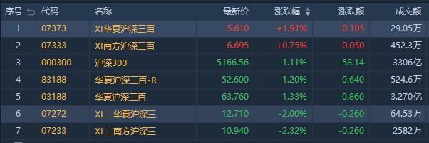 沪深300指数收跌1.11%。其中,华夏沪深三百-R(83188.HK)跌1.20%,成交额524.6万港元;华夏沪深三百ETF(03188.HK)跌1.33%,成交额3.27亿港元。