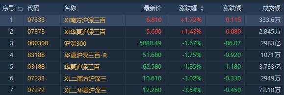 沪深300指数收跌1.67%。其中,华夏沪深三百-R(83188.HK)跌1.75%,成交额1071万港元;华夏沪深三百ETF(03188.HK)跌1.85%,成交额3.73亿港元。