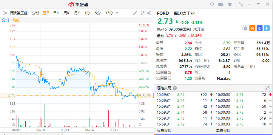 华盛资讯6月16日消息,美股盘前,福沃德工业(FORD)盘前大涨超38%,此前宣布与设备跟踪公司Chipolo达成美国分销协议。