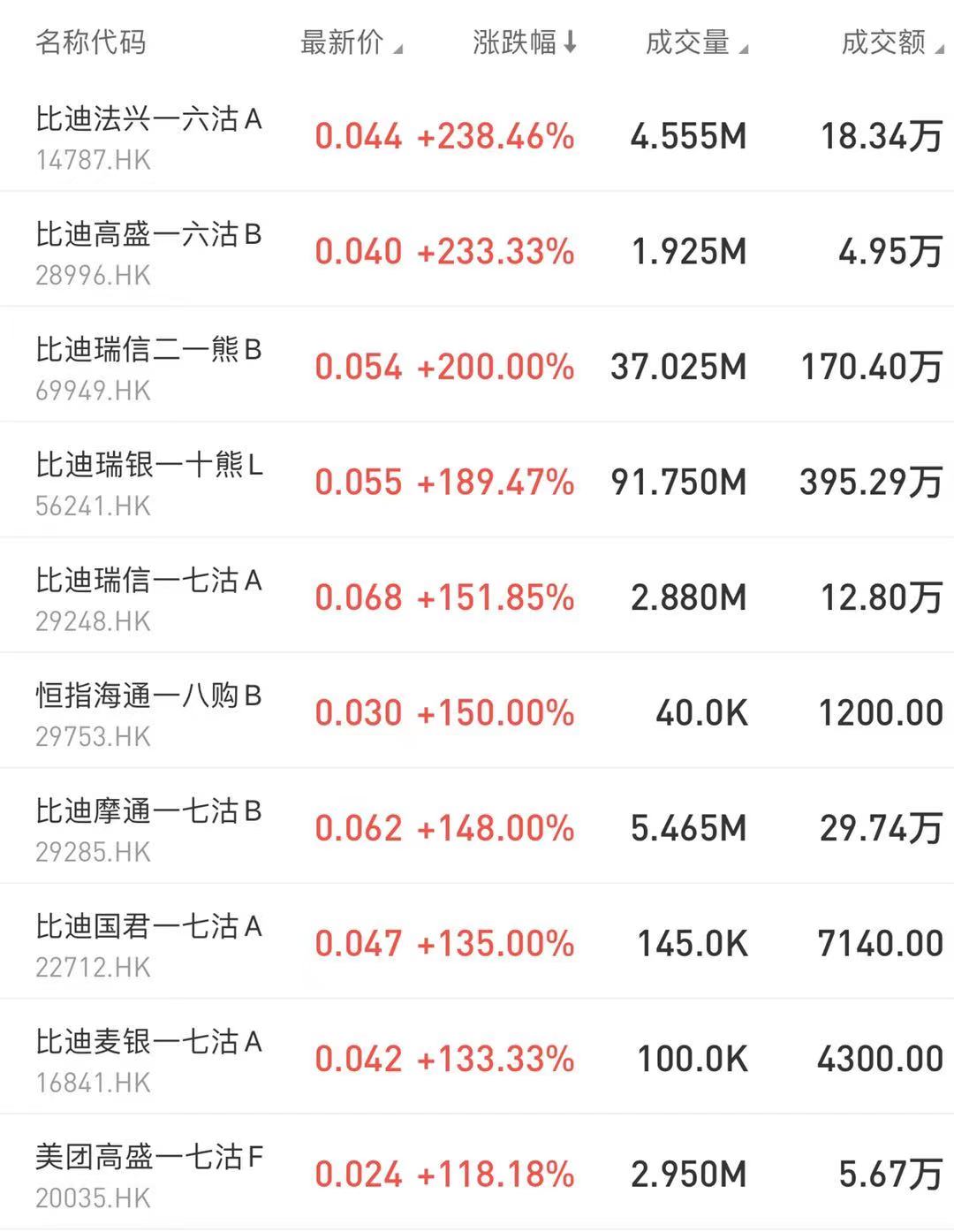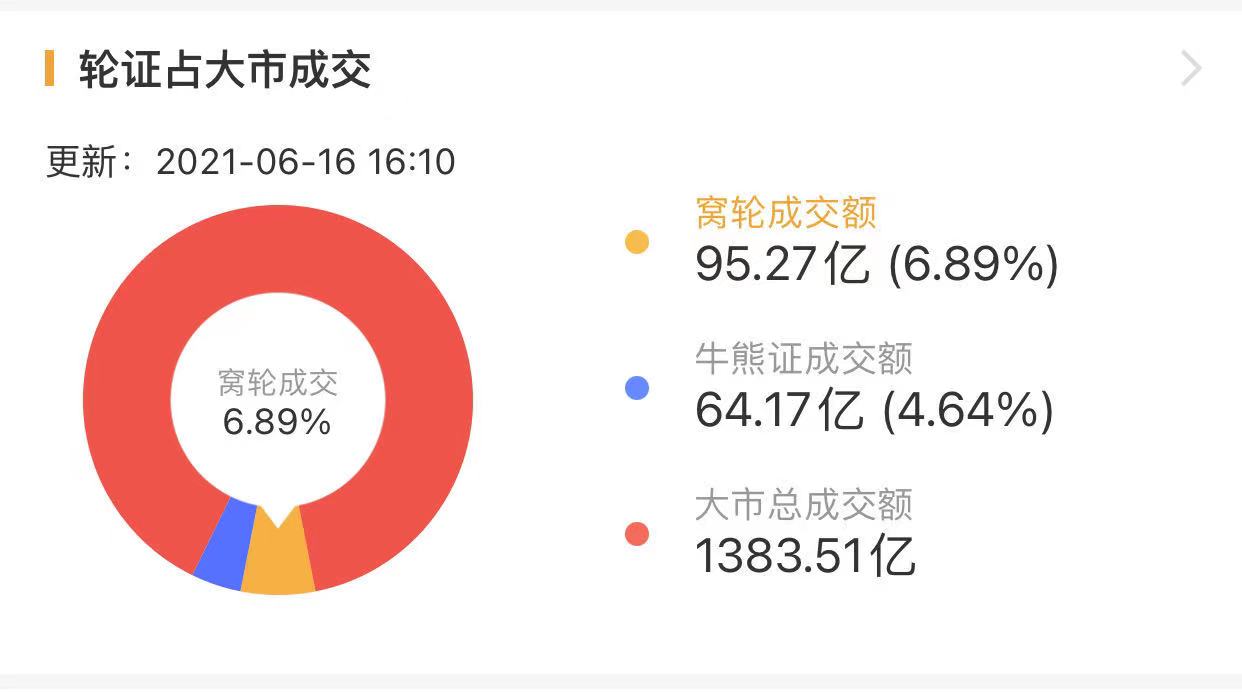 其中,窝轮总成交95.27亿港元,牛熊证总成交64.17亿港元。