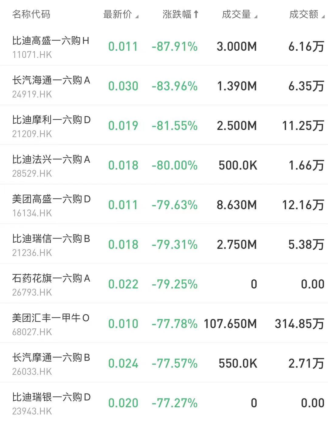 在今日跌幅榜中,比迪高盛—六购H跌87.91%;长汽海通—六购A跌83.96%。