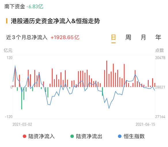 南下资金今日净流出港股高达6.83亿港元,周二净流入超15亿港元。