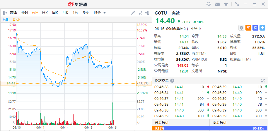 华盛资讯6月16日消息,美股早盘,中概教育股多数下挫,高途(GOTU)跌超8%,好未来(TAL)跌近8%,新东方(EDU)跌近6%,一起教育科技(YQ)跌超4%,有道(DAO)跌近1%。