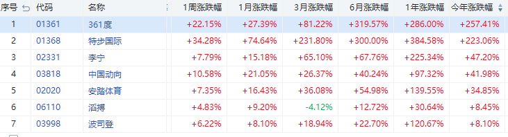 今年以来港股市场上国产运动品牌相关公司股价走势非常强,也吸引了越来越多的投资者关注。