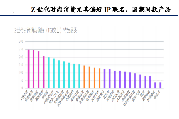 通过三方机构华扬数据统计,Z世代时尚消费方面尤其偏好IP联名和国潮同款等产品。