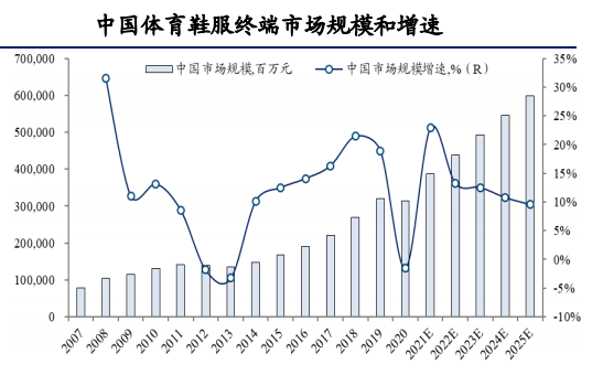 2020年虽遭受疫情冲击,但运动鞋服增速仅下降2%(全球市场下降15%)。
