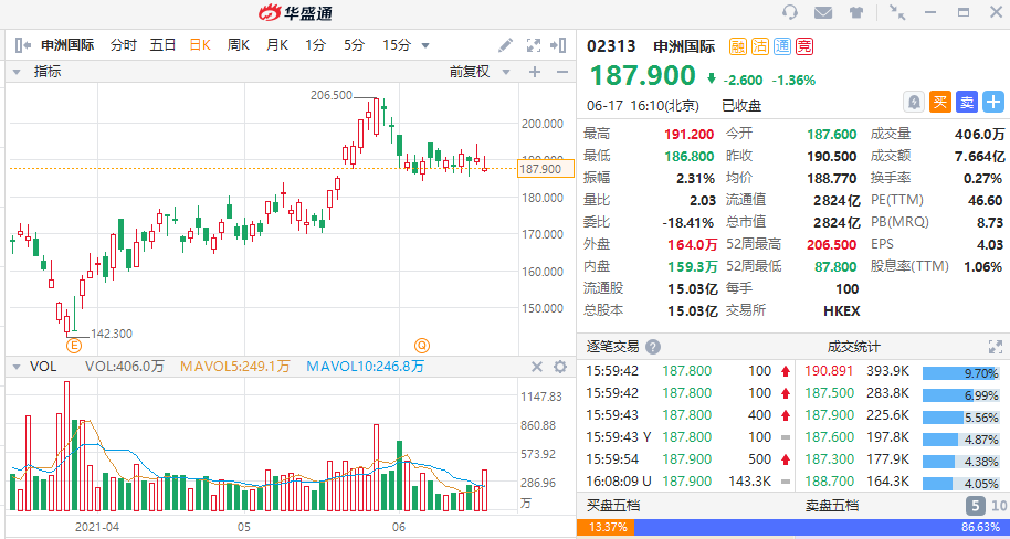 例如创立20余年,中国最大的一体化针织供应商申洲国际在约十五年的时间,股价累计涨幅超过110倍。