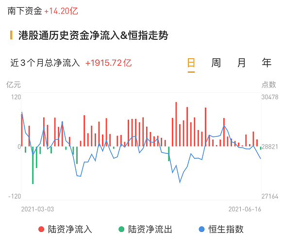 南下资金今日净流入港股高达14.20亿港元,周三为净流出超6亿港元。