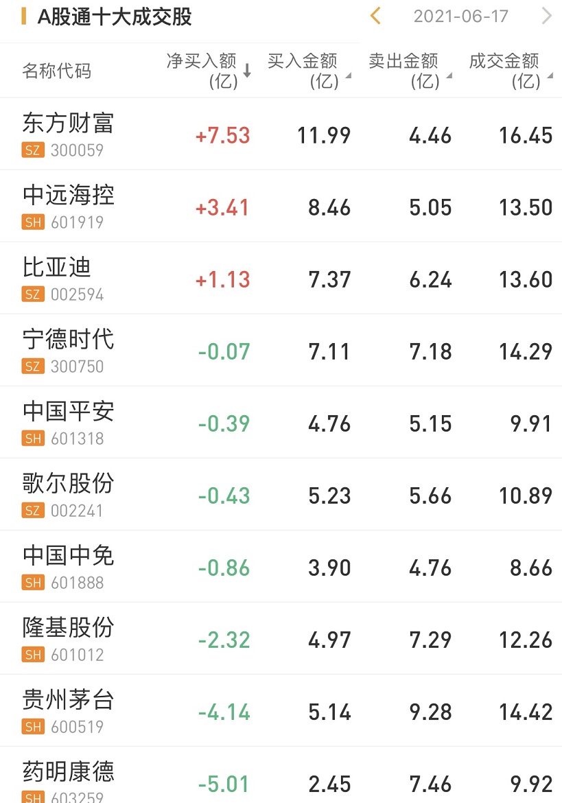 北上资金今日净买入东方财富7.53亿元,为今日买入之最。
