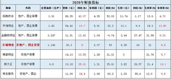 和2020年上市物企业绩对比,长城物业营收增速、毛利增速和净利增速排在20名开外,和其在管规模并不匹配,唯有营收规模对得起规模TOP13的头衔。