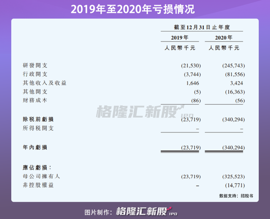 然而,百心安当前并无营收,由于公司目前尚未有产品商业化,因此并未有盈利同时还产生经营损失。招股书显示,2019年期内亏损净额为2371.9万元,2020年亏损净额为3.4亿元。