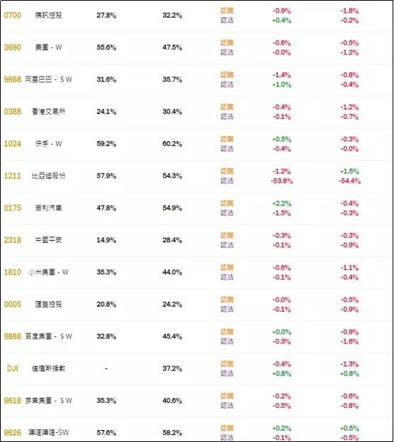 周四恒指相关权证的平均引伸波幅约18.1%,按日显著调降。个股方面,腾讯、美团、阿里及比迪等相关认购证的引申波幅按日调降显著;相反,吉利汽车相关认购证的引申波幅则按日显著调升。