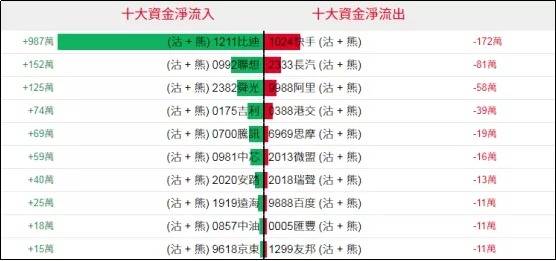 淡仓(认沽证及熊证)方面,周四比迪相关淡仓单日录得约987万港元资金净流入,个股相关淡仓方面净流出、净流入资金规模均较小。