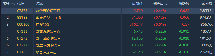 沪深300指数收涨0.01%。其中,华夏沪深三百-R(83188.HK)涨0.12%,成交额974.3万港元;华夏沪深三百ETF(03188.HK)跌0.51%,成交额2.62亿港元。