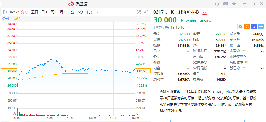 华盛资讯6月18日讯,科济药业(02171.HK)及优然牧业(09858.HK)今日首挂,科济药业收跌8.54%,一手账面亏损1400港币;优然牧业收跌11.89%,一手账面亏损830港币。