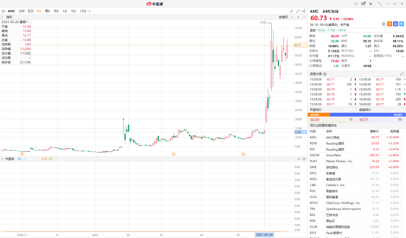 5月7日,游戏驿站市值为112亿美元,有资格加入大盘股;而AMC院线则为43亿美元,未能够到及格线。但自5月7日以来,AMC院线的股价飙升480%,且进行了多次增发,进一步提升了其市值。