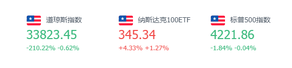 周四(6月17日)收盘,纳斯达克综合指数涨0.87%,报14161.35点,接近历史高位14,211.57点;道琼斯指数跌0.62%,报33823.45点;标普500指数跌0.04%,报4221.86点。
