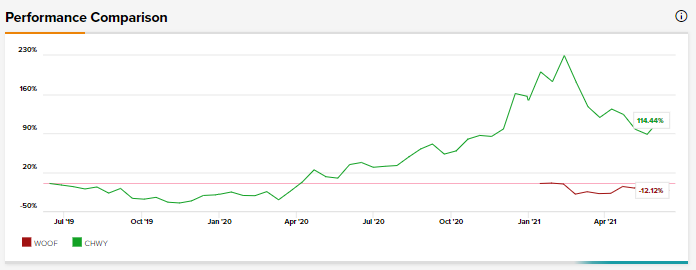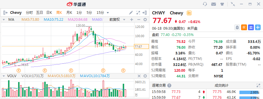 Chewy是美国最大的宠物电商,也是去年美股市场中的明星股之一,去年一年该股股价飙升了210%。