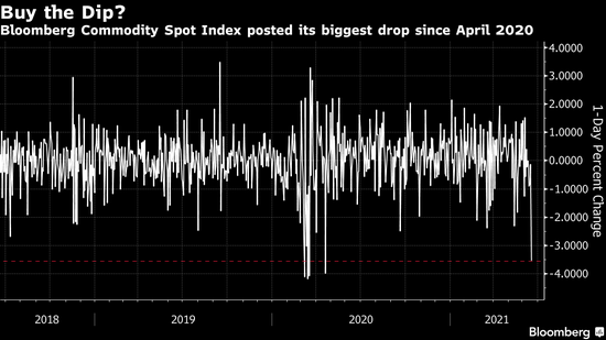 彭博大宗商品现货指数周四下跌3.6%,创下近14个月最大单日跌幅,其中大豆和铂金抹去了今年的涨幅。大宗商品市场受到了几个利空因素的冲击:美联储发出潜在加息信号,美元走强,中国采取行动减缓通胀,降雨改善了美国农作物生产前景。