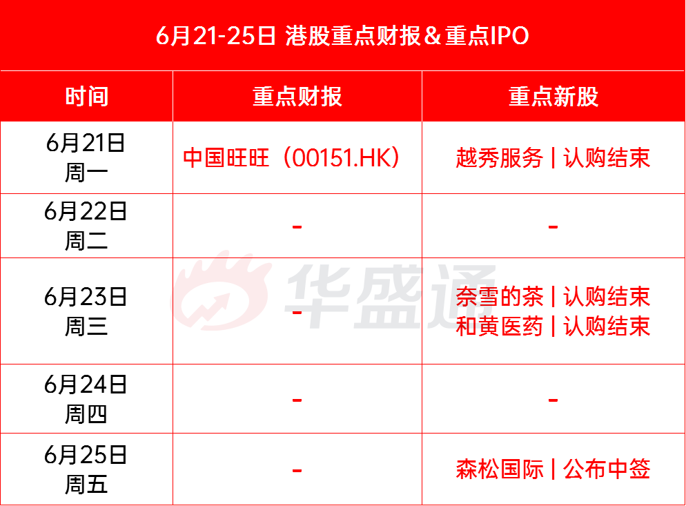 香港居民消费价格指数(CPI) (同比) (5月),美国现房销售 (月环比) (5月),美国制造业PMI (6月),美国Markit综合PMI (6月),美国服务业PMI (6月), 美国新屋销售 (5月),美国 GDP - 销售 (第一季)
