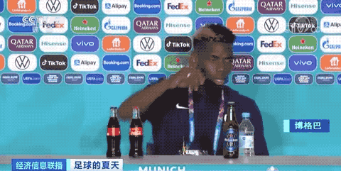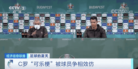 此前,葡萄牙球星C罗在参加新闻发布会时挪开赛事赞助商可口可乐饮料的举动,引发多名球员争相模仿。
