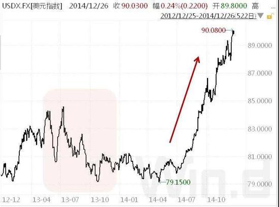 美元方面,在2013年5月至2013年12月期间,美元指数震荡下行,直到美联储真正行动之后,才开启陡峭的升值之路。